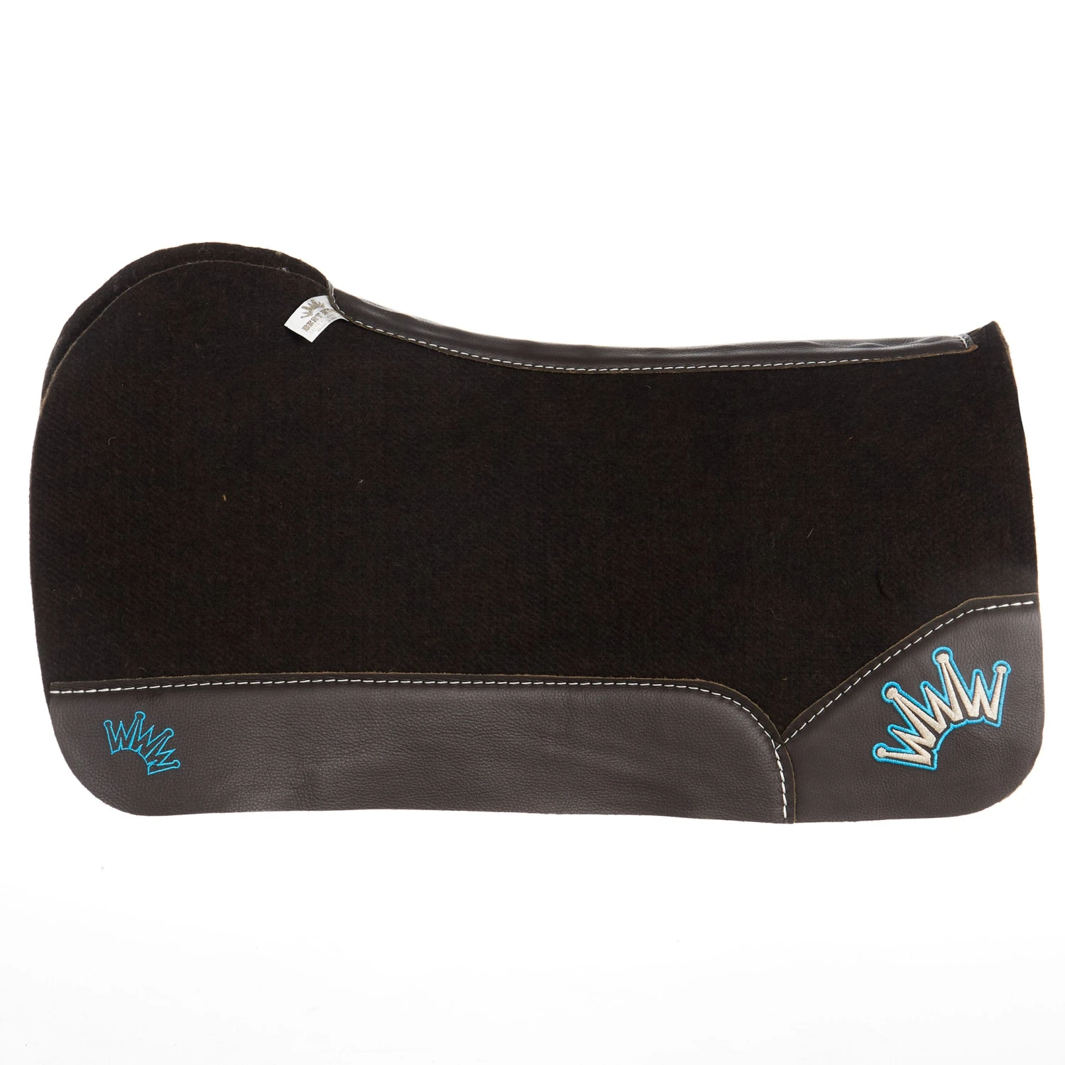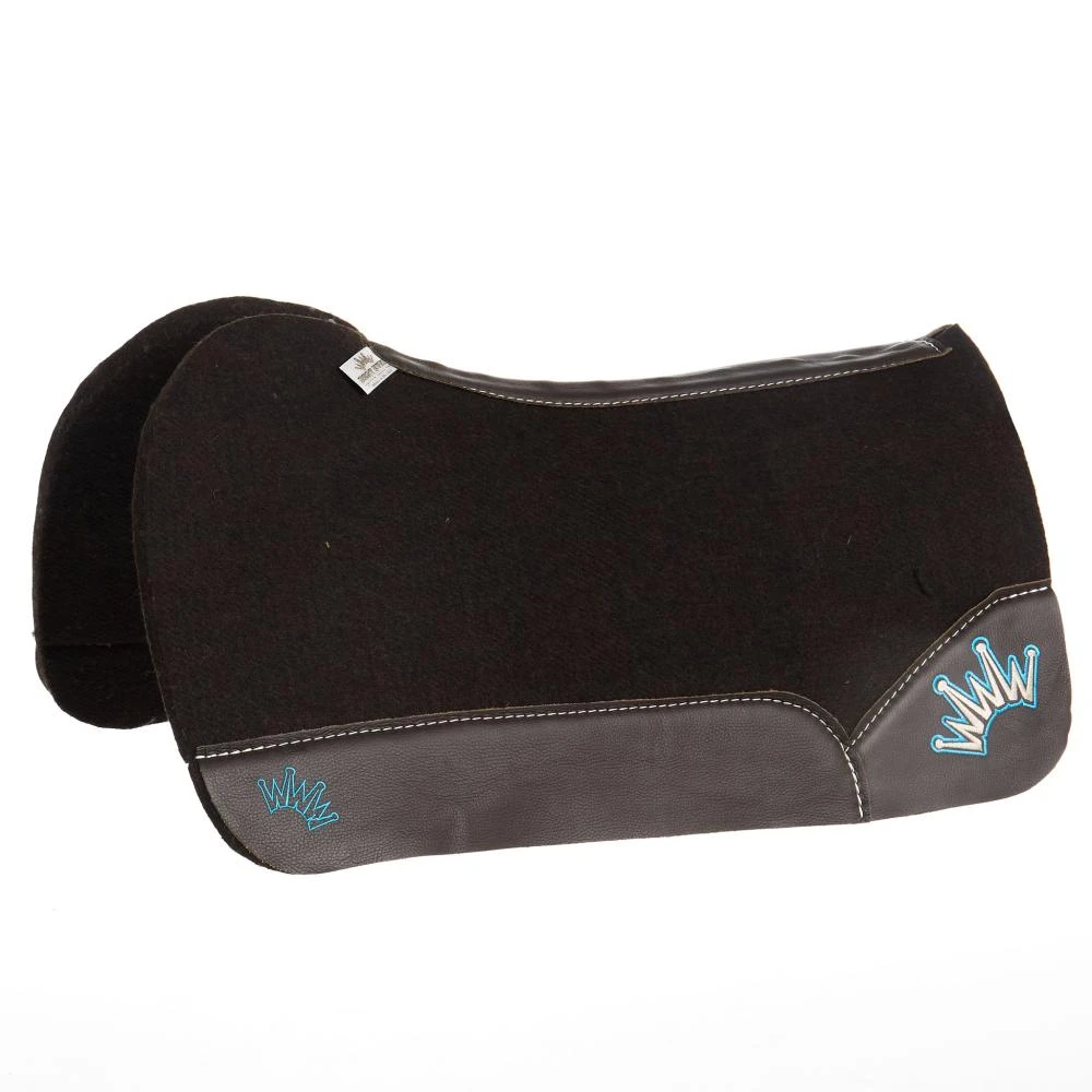 Introducing the latest addition to our NRS Saddle Pad Collection – the Best Ever 3/4 Inch OG Wither Relief Felt Saddle Pad, complete with wither relief for optimal comfort during performance. This Best Ever OG Saddle Pad features a wither relief open gullet, which is a beneficial alternative for alleviating wither tension and promoting shoulder mobility. These pads are particularly suitable for performance horses, favored by many barrel racers, and fit horses with a standard backline or a raised wither. The smooth chocolate brown wear leathers show off a turquoise embroidered crown on the front and a turquoise and cream crown on the rear corner leather. This pad measures 30″x30″. The product number for this saddle pad is OG-34-SBRN-WR. #ridewiththebest