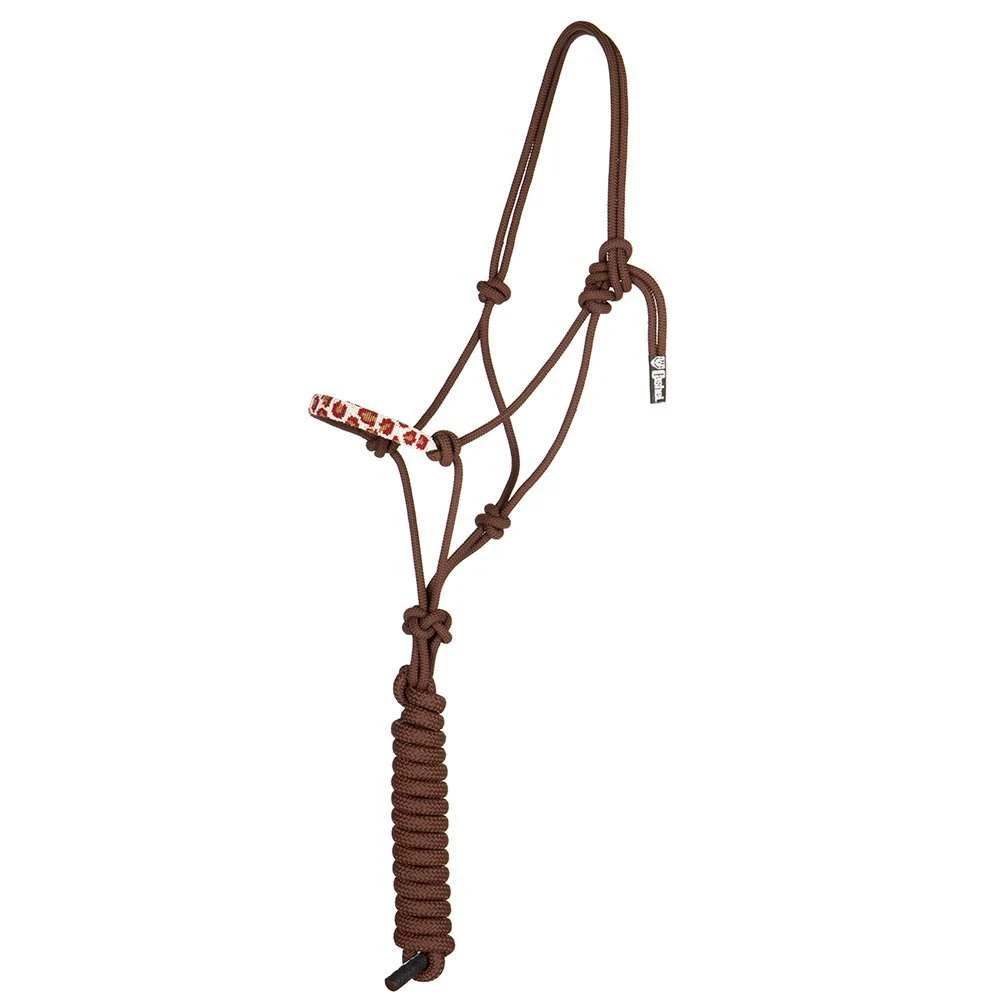 The Cashel Beaded Rope Halter features a brown cheetah beaded noseband on a durable nylon/poly body. Comes with attached 9′ lead.