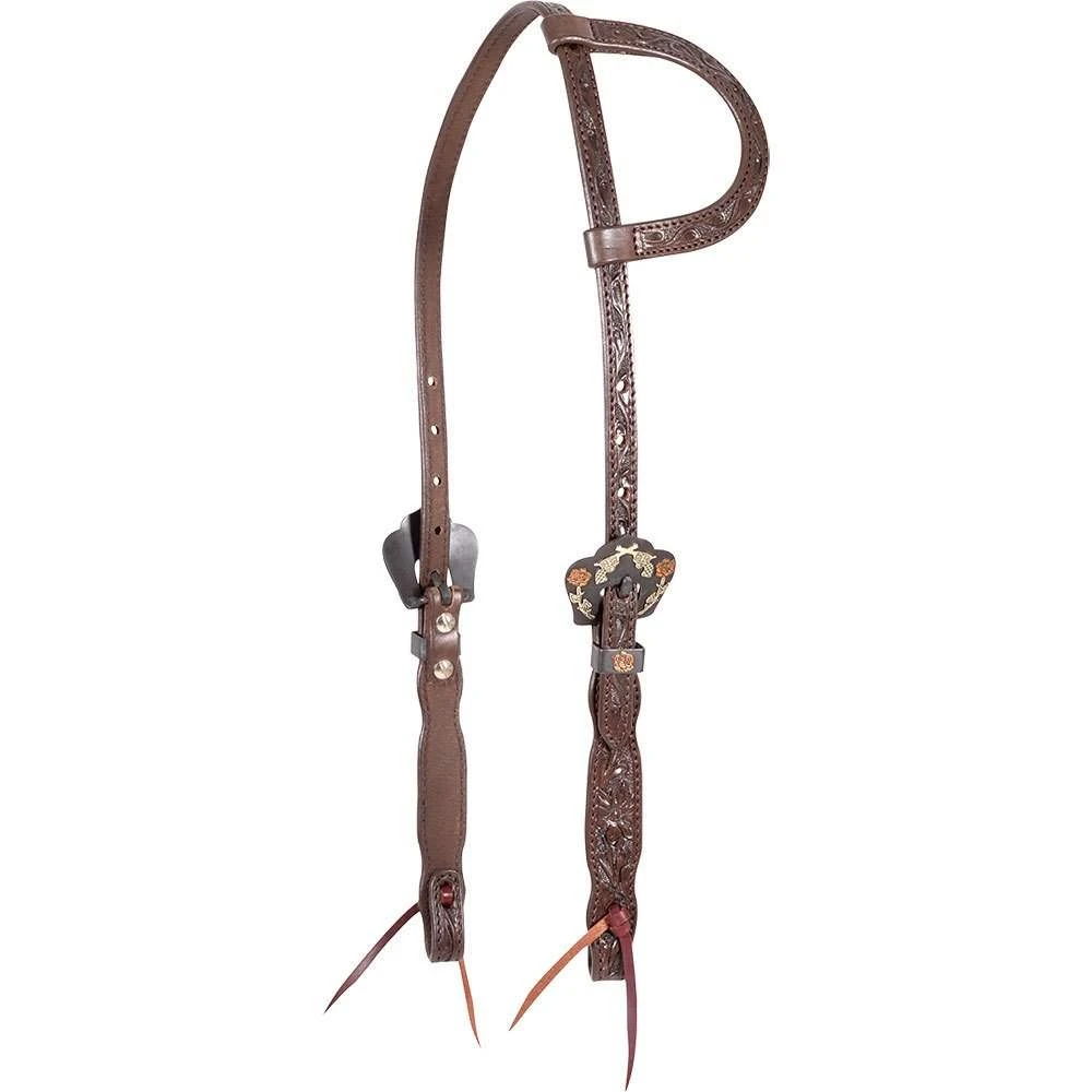 Slip Ear Headstall with Desert Flower tooling ,Guns and Roses buckles, and bit ties.