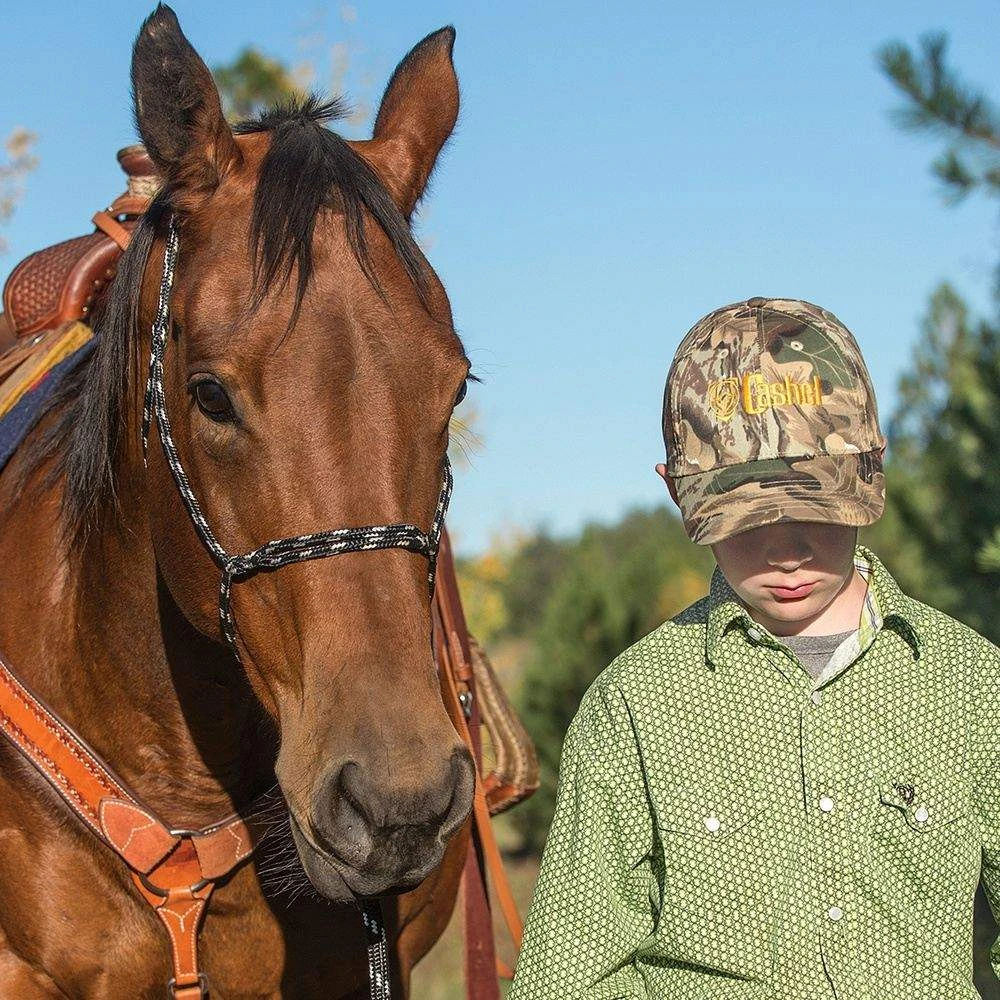 High quality, weather resistant rope is ingeniously interwoven for a smooth transition at the nose, throat, and cheeks. This design reduces pressure and abrasion, helping to eliminate discomfort and missing hair. Sturdy tri-weave will not slip. Includes halter and 9′ lead with popper. Black.