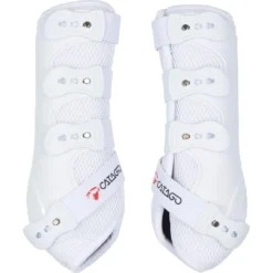 The FIR-Tech Healing Dressage Boot is an innovative and highly ventilated boot infused with the FIR-Tech fabric to provide protection and support for your horse as well as providing a faster warm up of the muscles, tendons, and joints to better prepare them for work. A combination of a hard shell and a soft mesh material allows excess heat to escape while protecting against strikes of the flexor tendon. The 4th strap under the fetlock offers maximum support of the suspensory and flexor tendons thanks to the anatomic and elastic properties of the boot. 4 elastic straps allow for a customized fit while quick release tabs hold securely yet are easy to put on and remove.