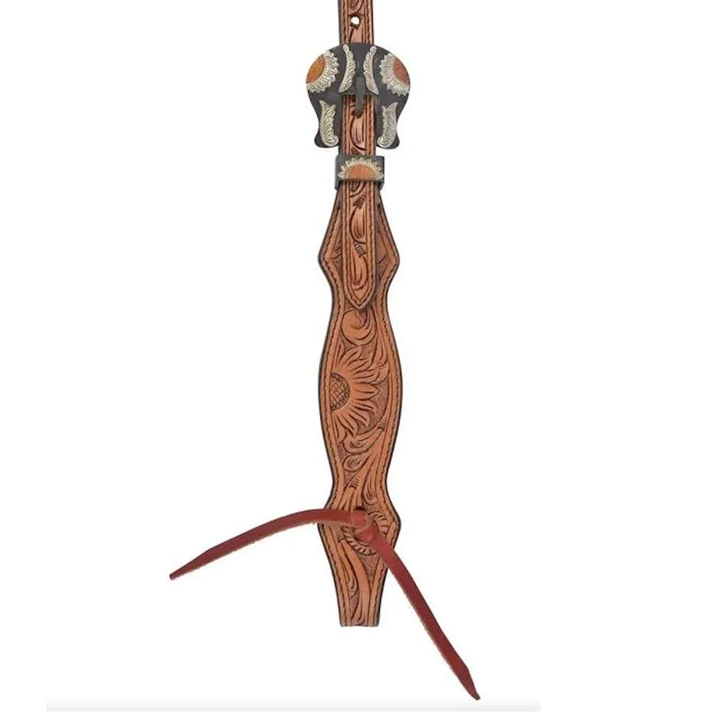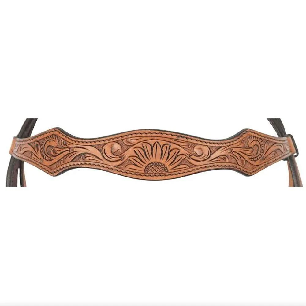 This beautiful 5/8in browband headstall from Circle Y features hand tooled sunflowers on antiqued leather. Finished with brown iron rusted iron buckles that showcase an engraved German Silver and copper sunflower design. 1012-12-W6