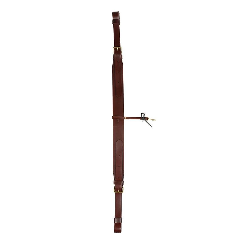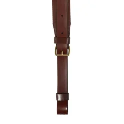 This Walnut leather flank is 3″ wide and has brass hardware.