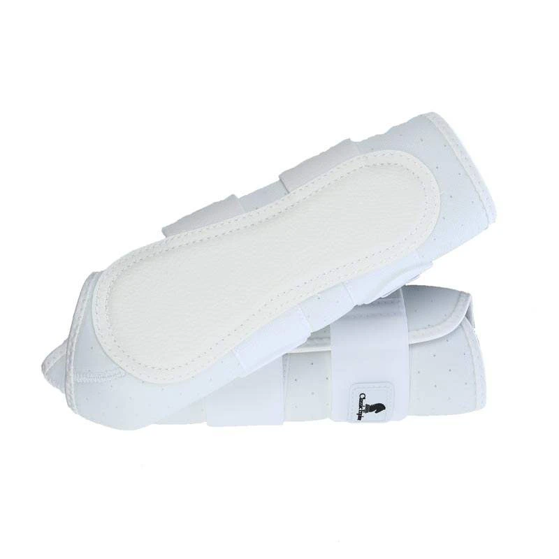 A great boot for the show ring with a close, clean fit and no bulk. Protects splint and sesamoid area and provides support to tendons. Leather splint pad with a shock absorbing nitrate inner lining provides splint protection. Leather fetlock guard is slightly padded to provide more protection against wear and crossfiring. Three hook-and-loop straps make this an easy boot to put on and take off.
