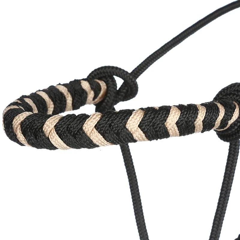 Two tone nylon rope halter with yacht line lead and leather popper. Accented noseband, throat, and lead loop.
