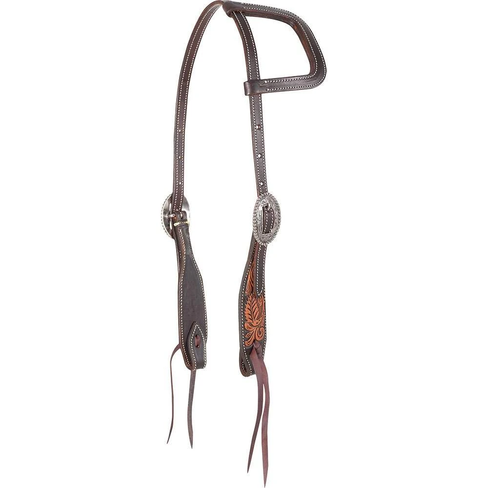 Slip Ear Headstall with Floral tooling, dyed edges, Rockin Out buckles and bit ties.
