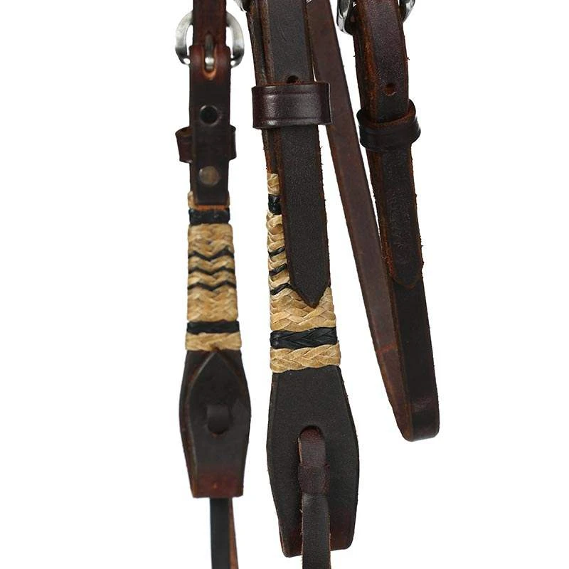 Herman Oak harness leather with rawhide braiding, stainless steel hardware, and quick change buttons.