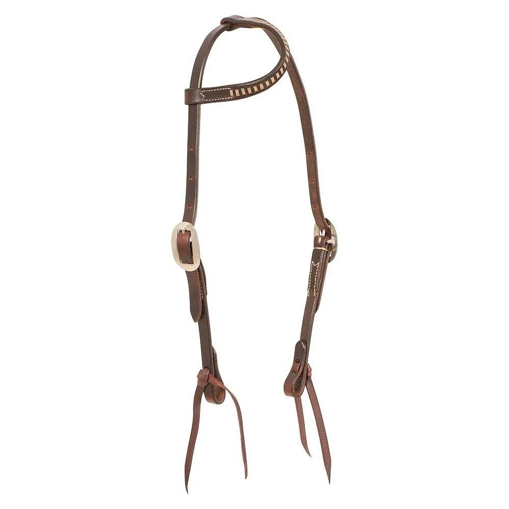 This exquisite Martin Saddlery Single Ear Headstall with Rawhide Lacing is crafted from premium harness leather, known for its durability and strength. The intricate rawhide lacing adds a touch of elegance and showcases exceptional craftsmanship. Equipped with sturdy stainless steel cart buckles and convenient bit tie ends, this headstall ensures a secure and comfortable fit. Experience the perfect blend of style and functionality with Martin Saddlery’s Rawhide Lacing Single Ear Headstall. The product number for this exceptional piece is HF23RL.