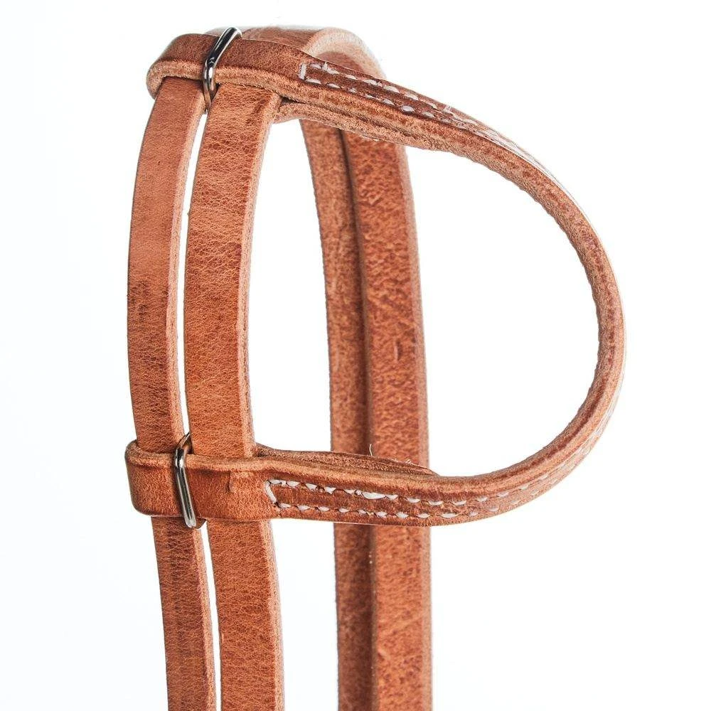 NRS Single Ear Tie End Headstall w/Throat Latch is constructed out of premium Hermann Oak harness leather. This headstall is a game changer for those horses that will not keep a regular single ear headstall on. NRS-SEHOTL