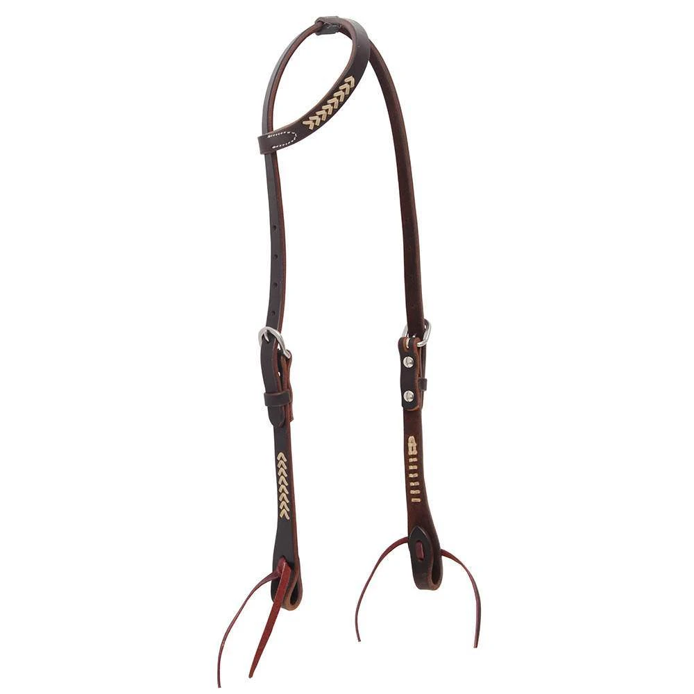 This Oxbow Single Ear Headstall features punchy rawhide weaving constructed on harness leather. It is great for roping, ranch work, colt starting and more! 202261