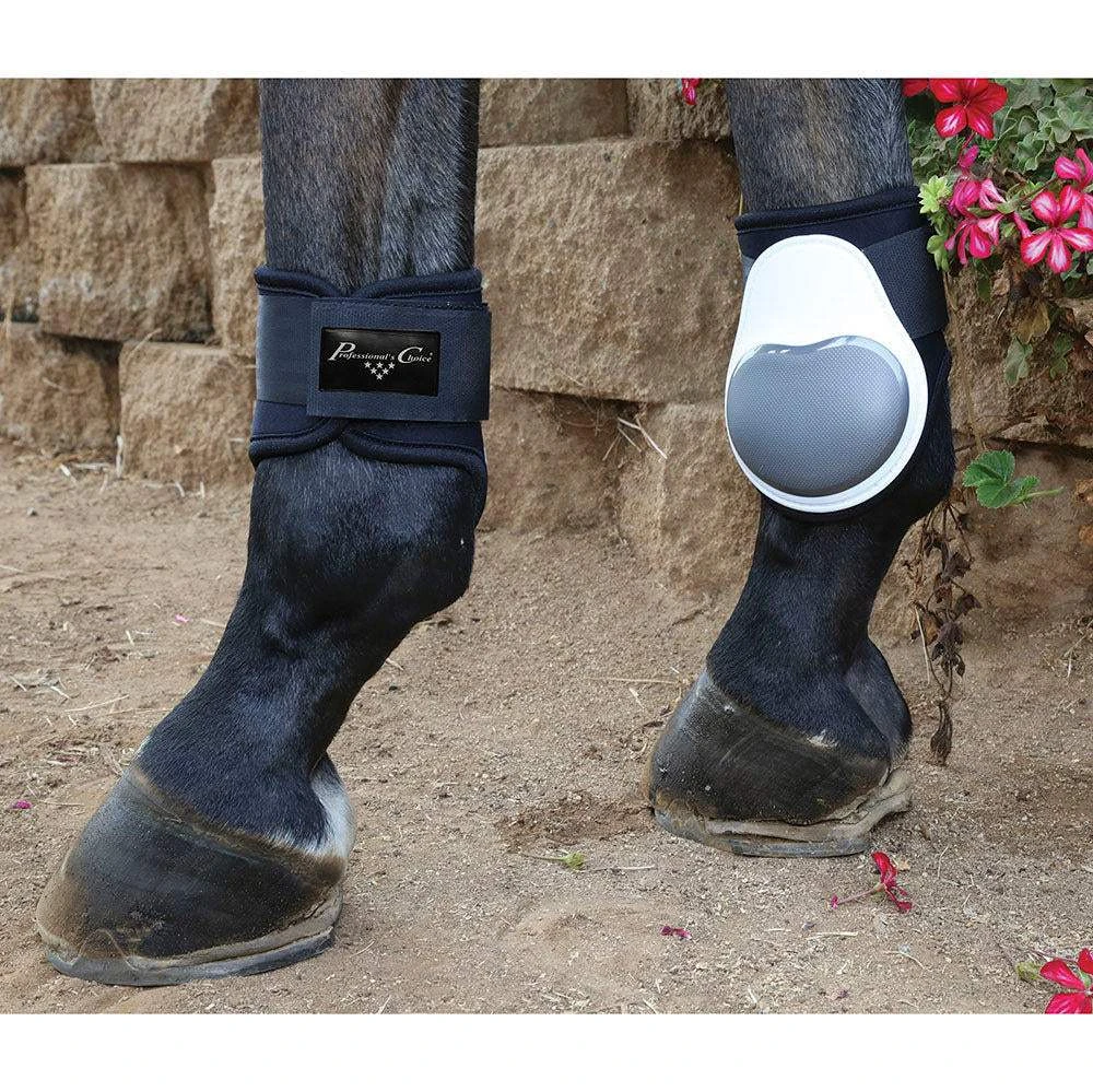 These Professional’s Choice Pro Performance Fetlock Boots feature a hypoallergenic polyolefin foam lining that is perforated to maximize airflow and keep legs cool. Neoprene free. Durable, lightweight and ventilated dual hardness outer shell. Shock-absorbing air cusion protects the tendon area. These fetlock boots fall within FEI guidelines.