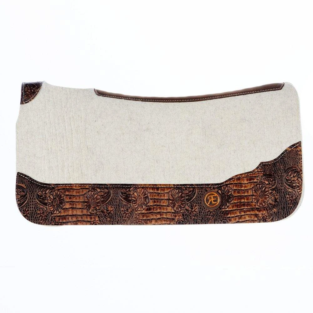 - The Reinsman 3/4 Inch APEX Performance Felt Saddle Pad with Brown Crocodile Wear Leathers is made from 100% premium wool, providing exceptional shock absorption and moisture-wicking properties.