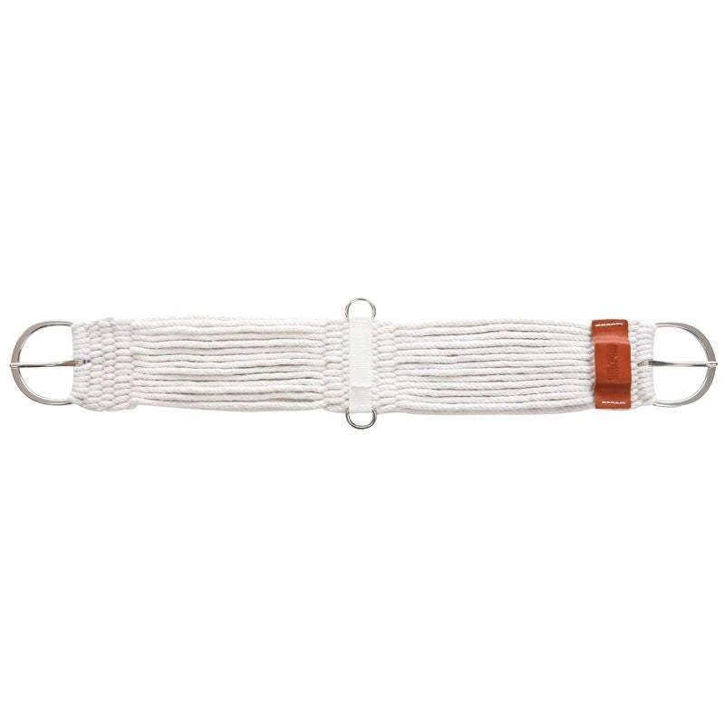 This Straight Cutter Cinch is a 27 strand double woven cinch with a straight nylon center sewn in with stainless steel dees. A true western standard this cinch has a wide variety of uses from the cutting, working cow-horse, pleasure, trail, or ranching world. Hand-tied by former PRCA Bareback Rider Sean Amestoy, Current rodeo coach at Wharton Junior College. Offered in three great styles to cover all western equine disiplines. Excellent quality and materials and all made in the USA. Cinches feature stainless steel hardware and the highest quality 70/30 mohair/wool-blend cord. Custom sizes are available on request.
