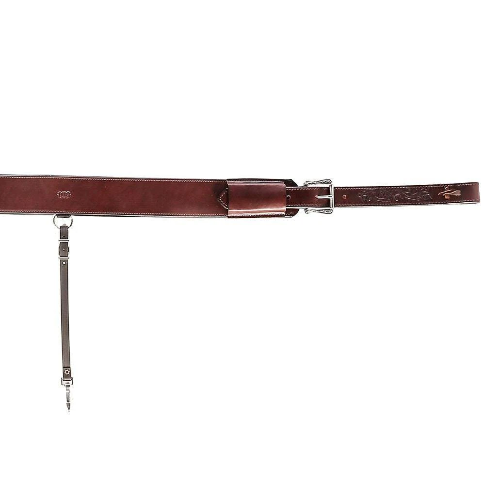 Tucker tooled Horizon tack is made of exceptional English bridle leather which is known for the luxurious softness, moisture repellent, and longevity. Stainless steel hardware is combined with black engraved accent buckles. This tack piece will beautifully accent your horse. The Horizon tack collection was designed with comfort and convenience in mind.
