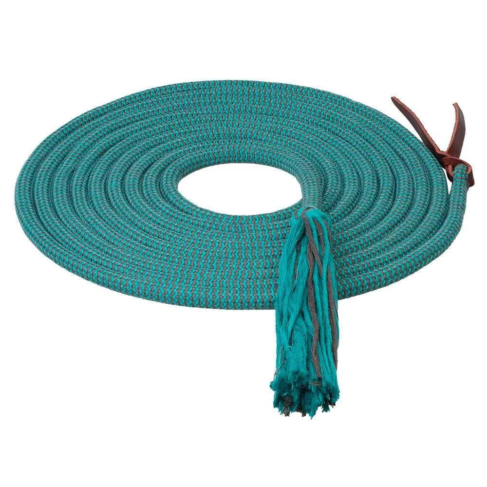 This Weaver round mecate is made from eco-friendly, organic bamboo that offers a buttery soft, luxurious feel in your hands. Breathable and moisture-wicking, bamboo keeps your hands dry and comfortable. Environmentally-friendly bamboo is 100% natural and biodegradable. Features a tassel on one end and a popper with bleeding heart knot on the other.