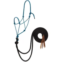 This Weaver rope loping halter with split reins is crafted from the same polypropylene 16-strand double braid rope that made the Weaver Silvertip Big Sky halter so popular! The narrower 1/4in diameter offers more control and an exceptional feel. Features 8ft solid braid split reins. Perfect for bitless riding customers. Hand tied with pride in the USA.